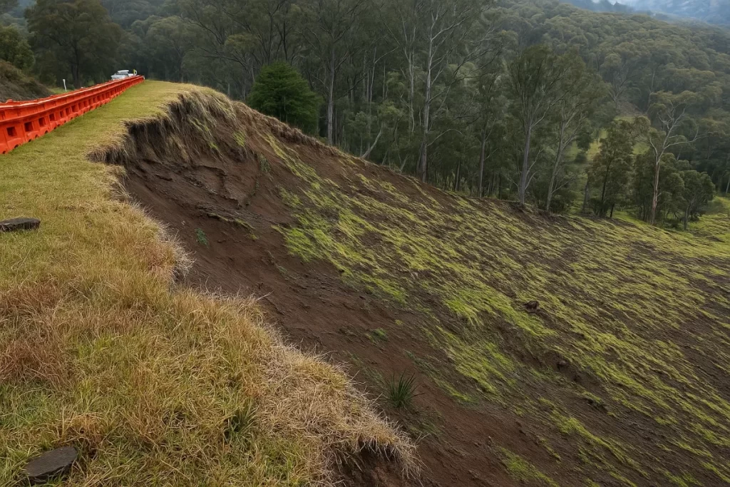 Project Overview: Apex was engaged to lead the geotechnical investigation, design, and construction-stage support for a critical landslip site along a 100 m section of Barrington Tops Forest Road, approximately 3 km west of The Dingo Gate. The project was initiated following a major landslip event that compromised road safety and access to the Barrington Tops National Park.